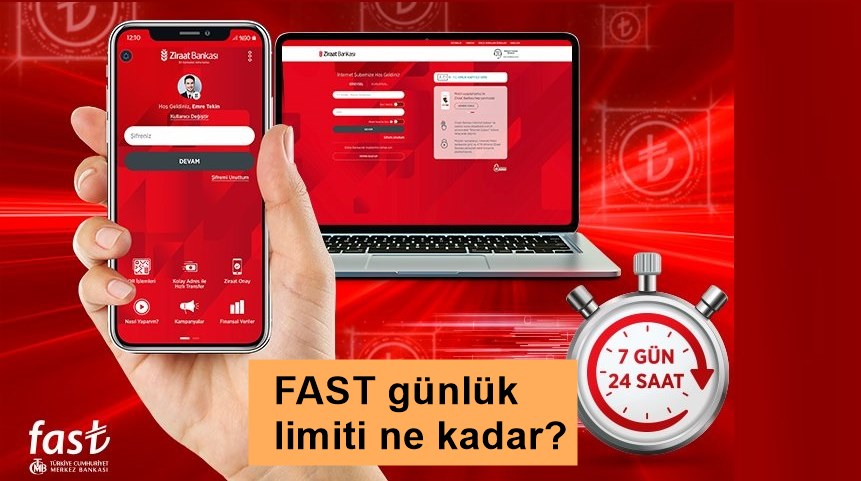EFT saatlerine takılmadan 7 gün 24 saat para transfer imkanı sunan FAST günlük limiti 2.000 TL'ye yükseltildi. Siz de günlük olarak resmi tatiller, cumartesi, pazar hafta sonu ve mesai saatleri dışı da dahil olmak üzere 7 gün 24 saat kesintisiz olarak FAST ile para gönderebilirsiniz.