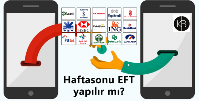 Hafta sonu hiçbir bankada EFT ile para gönderilemez. Cumartesi ve Pazar günleri eft yerine havale ile para transferi yapabilirsiniz. EFT işlemi, farklı bankalar arasında yapılan para transferi olduğundan dolayı cumartesi ve pazar günlerinde EFT işlemi yapılamaz. Ancak ileri tarihli EFT talimatı vererek para transfer işleminizin ilk iş günü pazartesi yapılmasını sağlayabilirsiniz. Hafta sonu internet bankacılığı ile mobil bankacılıktan yapacağınız EFT talimatı ile pazartesi saat 09:00 itibariyle EFT işleme alınarak para bir kaç dakika içerisinde karşı hesaba gönderilecektir. Pazartesi günü resmi tatil ise, resmi tatilin bittiği ilk gün saat 09:00'dan itibaren EFT talimatınız işleme alınacaktır.