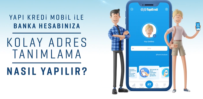 Yapı Kredi'ye Kolay Adres tanımlamasını yaparak, 26 haneli IBAN numaranıza elveda diyebilirsiniz. IBAN numarasında olan karışıklık ve ezberlemekte oluşan güçlük ile, EFT'nin sadece EFT saatlerinde yapılışından dolayı artık bankacılık kurulu çalışmalarını gerçekleştirerek Kolay Adres ile para gönderme işlemini tüm bankalara uyguladılar. Siz de Yapı Kredi mobil veya internet şubenizi kullanarak cep telefon numaranız (bankada kayıtlı olan), E-posta adresiniz, T.C. kimlik numaranızı; kurumsal hesaplar için ise vergi kimlik numaranızı kolay adres tanımlama yapabilirsiniz. İşte Yapı Kredi kolay adres tanımlama: